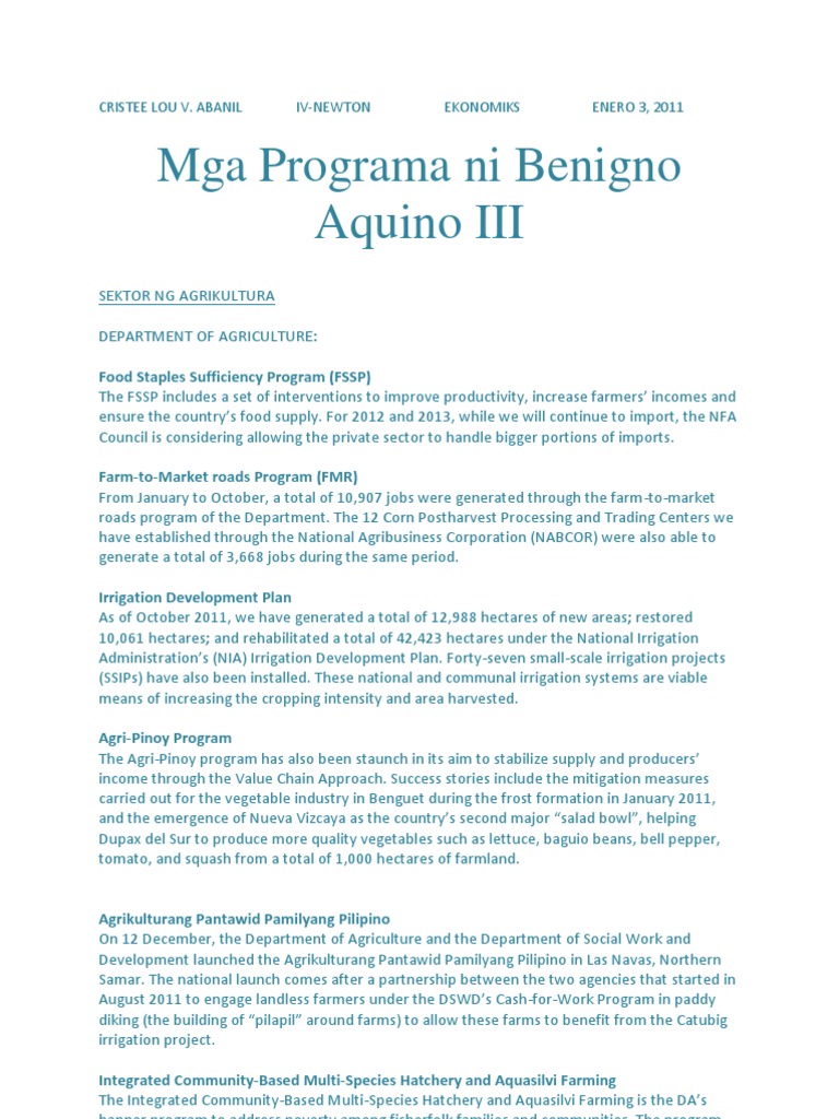 Benigno Aquino Iii Programs And Projects : Pnoy S Programs Welfare Employment - I offer my heartfelt condolences to the aquino family.